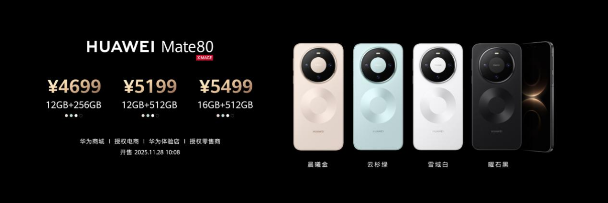 与此同时,华为Mate 80系列四款机型覆盖了多个档位:对于普通消费者而言,4699元起的华为Mate 80数字版已经足够全能,“品价比”尤为突出;如果追求在数字版基础上有着更强的综合体验,5999元起的华为Mate 80 Pro版也是不错的选择;至于华为Mate 80 Pro Max和华为Mate 80 RS 非凡大师,它们则立足8000元至万元档位,集顶尖外观美学、影像系统、屏幕素质与通信技术于一身,堪称旗舰中的旗舰。无论预算高低,华为Mate 80系列都能为消费者提供同档位脱颖而出、物超所值的选择。